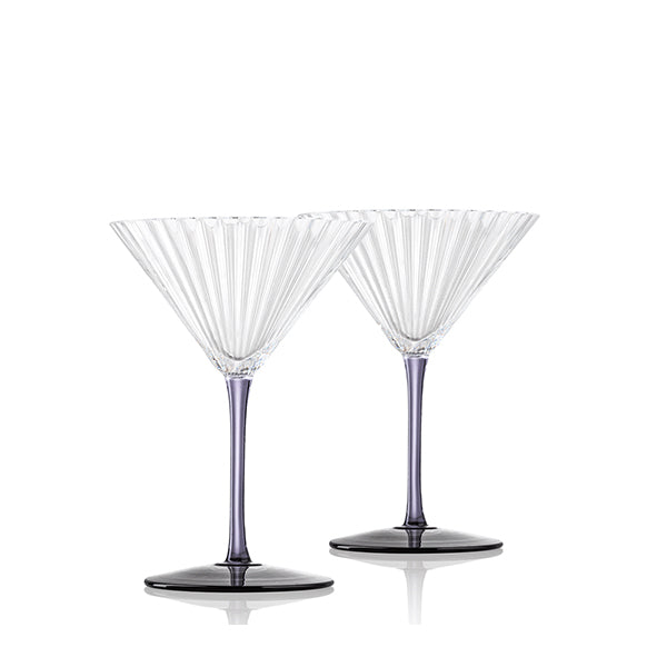 A refined set of two Martini Cups in Murano blown glass, featuring the iconic Balloton texture and transparent Wisteria and Grey tones. Designed by NasonMoretti as part of the Archive collection.