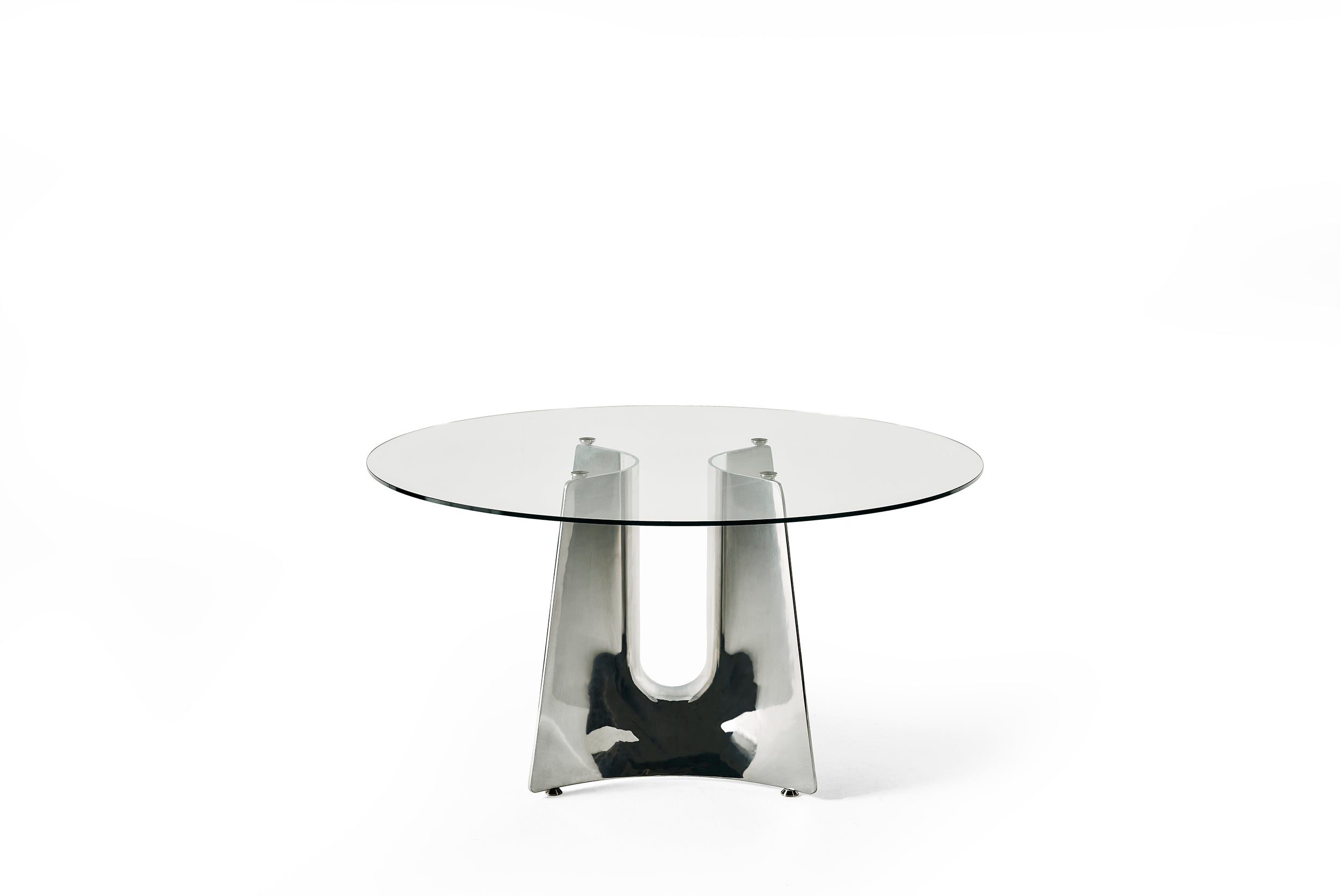 Bentz is a line of tables and low tables that can be completely disassembled and recycled. Available in square or round versions and in different heights, they have a cast aluminium base and transparent tempered glass tops.