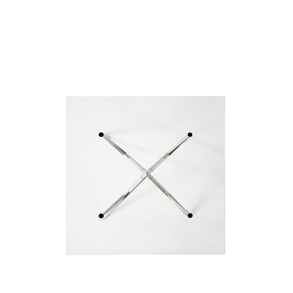 President M is the table designed for François Mitterrand's private study at the Élysée Palace. A project that expresses the contrast between lightness and density, both in materials and meaning. Composed of only three structural parts, it is fully disassemblable. The legs form a secondary structure that supports the true load-bearing elements of the transparent crystal top: die-cast, ribbed shapes that evoke shark fins, angel wings, and biomorphic silhouettes. Visually incongruous forms that are perfectly functional, upon which the top seems to levitate.