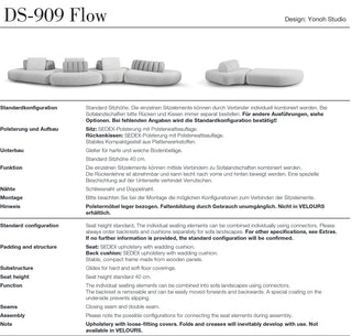 Flexible modular seating in standard seat height with individually positionable back elements. The individual seat elements can be individually combined using connectors. For sofa landscapes please always order backs and cushions separately.