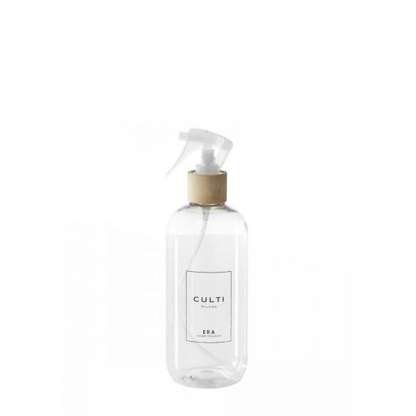 Cylindrical serigraphed bottle in transparent PET with Trigger. Elegance and minimalism come together in the exclusive WELCOME collection by CULTI MILANO. Enjoy CULTI's most iconic fragrances instantly with this handy spray diffuser. Era: the sweet sour feel of forest comes from an experience of meditative, enveloping and theatrical breath. A rough and sweet place at the same time shaded. Truthful, in total harmony with the soul and with the place of reference. An enchanted place that reminds of a time, an era, unforgettable.