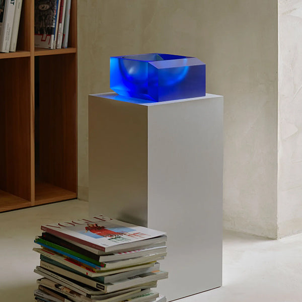 A captivating aquamarine vase inspired by the ocean and free-diving. Its passionate fans affirm that both motivational tension and still-like harmony can be found in the depths. This strain between enormous pressure and meditative lightness is embodied within the Abyss vase’s rotund core, formed by the glassmaker’s breath, and the sharply cut, exterior brutalist edges. This monumental vase is the most challenging piece currently made at the Moser glassworks. The matte Abyss vase is a limited edition of 99 pieces.