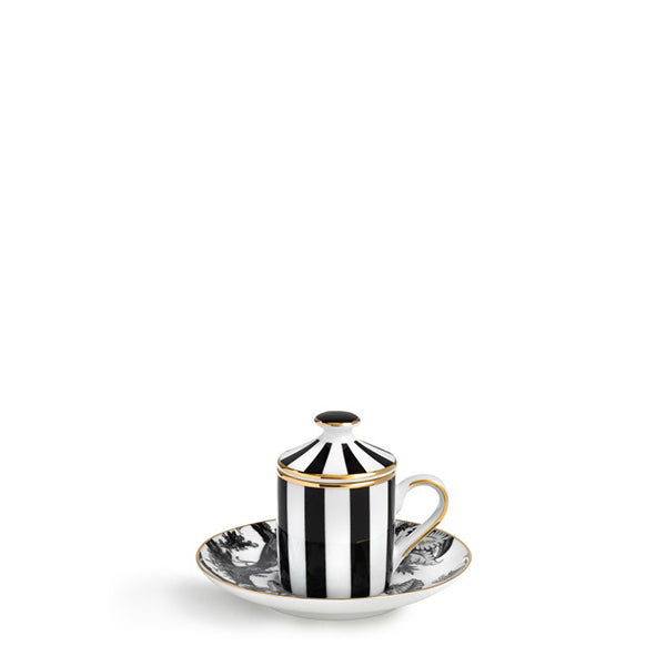 Porcelain Coffee Cup with a lid finished by hand with real gold thread.