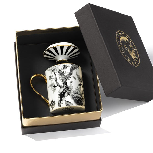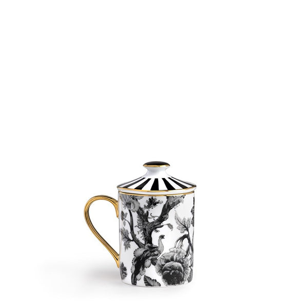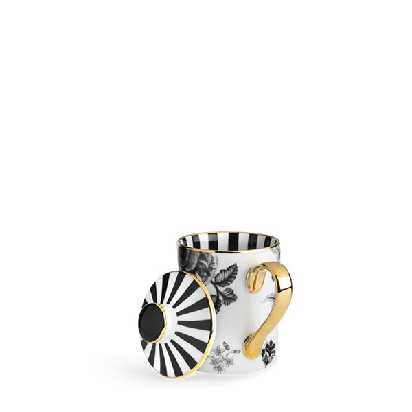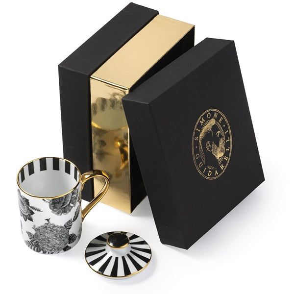 Porcelain Mug with a lid finished by hand with real gold thread.