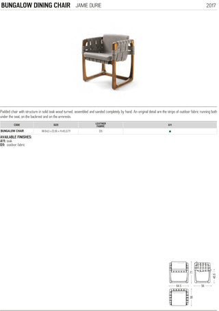 Sedia imbottita con struttura realizzata in legno massello di teak completamente tornita, assemblata e levigata a mano. Un intreccio di stringhe di tessuto da esterno caratterizza la seduta, che si distingue per il grande comfort.