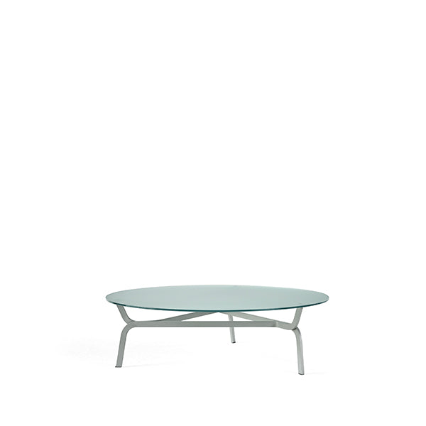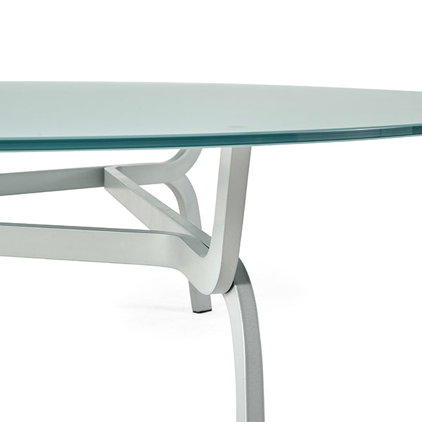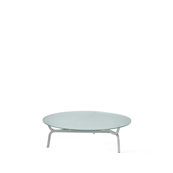 Roots is a collection of round coffee tables with an aluminium structure. The top is in tempered glass and is available in transparent, translucent etched or smoked versions. Completely disassemblable, lightweight and optimised for transport.