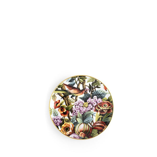The Exotic Jungle collection of porcelain dishes and accessories is presented in an elegant padded gift box finished with edging, the Simone Guidarelli logo, and gold-printed details.