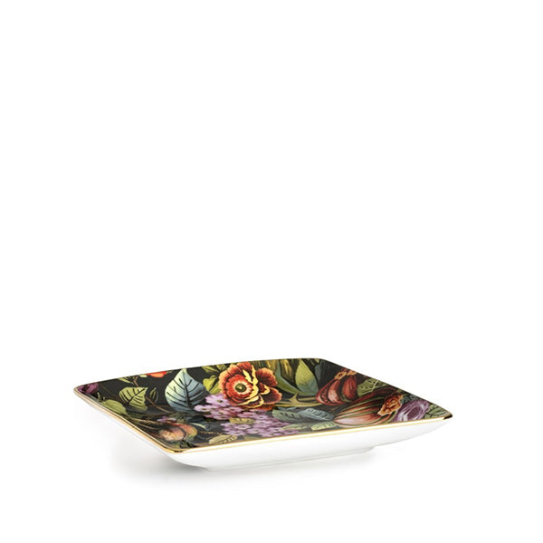 The Exotic Jungle collection of porcelain dishes and accessories is presented in an elegant padded gift box finished with edging, the Simone Guidarelli logo, and gold-printed details.