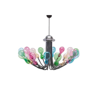 The lighting parts of Blob seem to be light balloons suspended in the air, a fresh look for this new generation chandelier designed by Karim Rashid for Purho proposed in a kaleidoscopic mix of colours. Available in 8, 12 or 16 lights, Blob diffuses a homogeneous and delicate light emphasized by the special colours of the glass. As for the entire range of products offered by the company, Blob is also available for customisation thanks to the 21 colour variations available in the color chart.